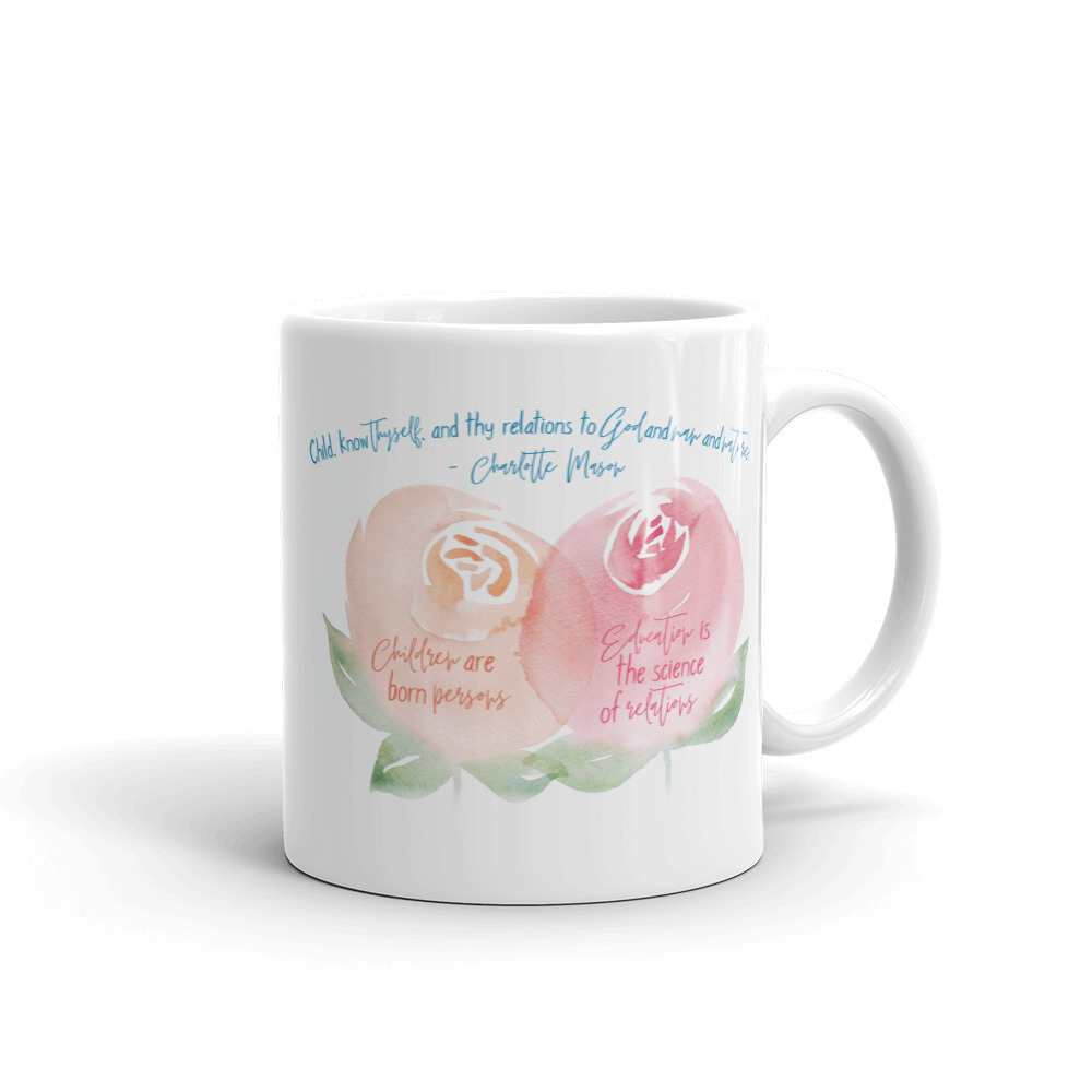 An 11oz. mug with a large handle. You can remind yourself of Charlotte Mason's primary principles and fortify yourself for the task of teaching with your favorite hot beverage at the same time. (Image on both sides)